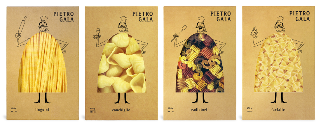 Дизайн пасты «Pietro Gala» был разработан агентством Fresh chicken для небольшой российской компании. Шеф-повар по имени Пьетро Гала, придуманный в агентстве Fresh chicken, является лицом бренда и упаковки.